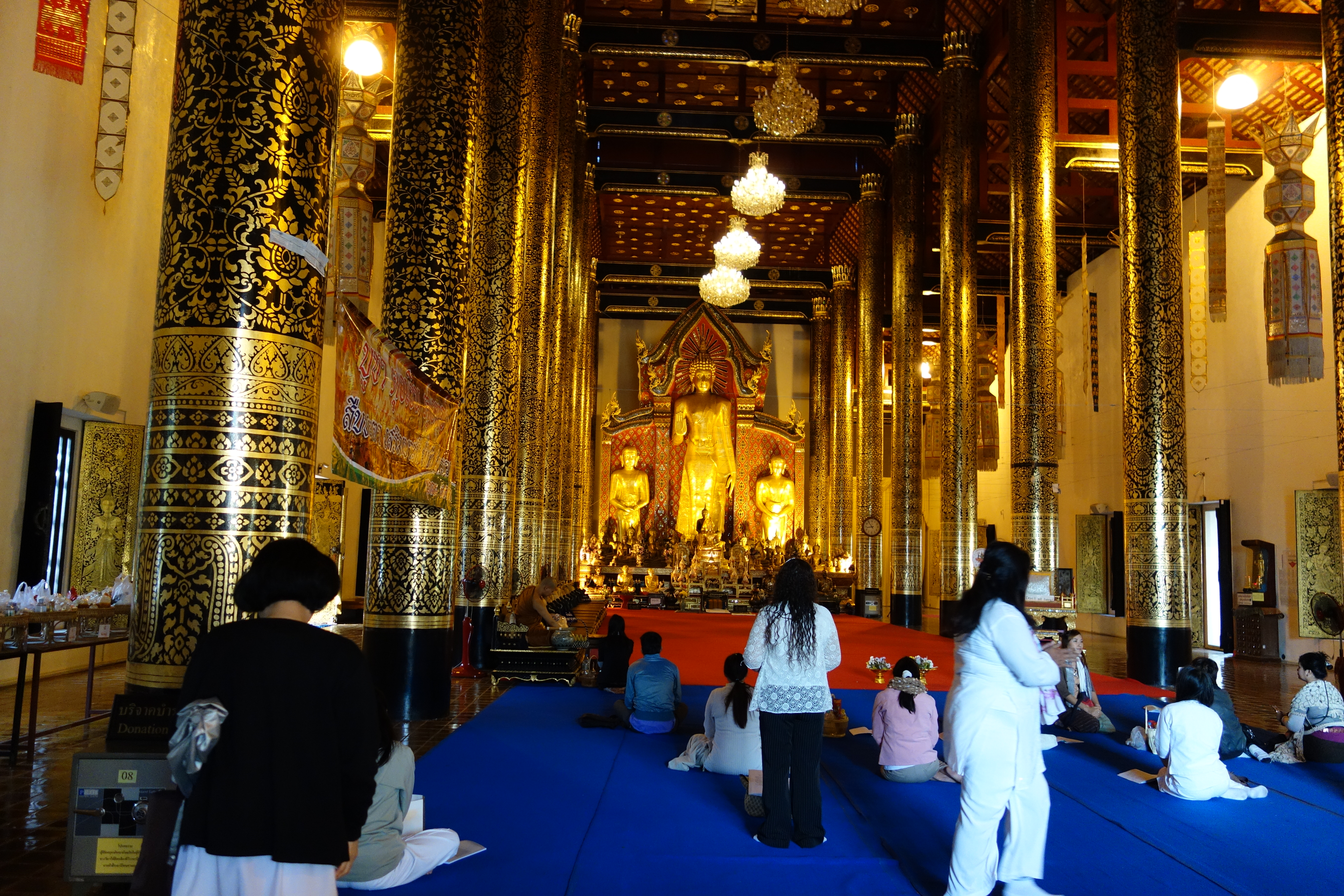 The first temple we saw was Wat Chedi Luang. It was a local Buddha temple that had many people praying. The tour guide explained to us that their religious days were based on the moon. There was an area where locals brought food offerings to the temple.