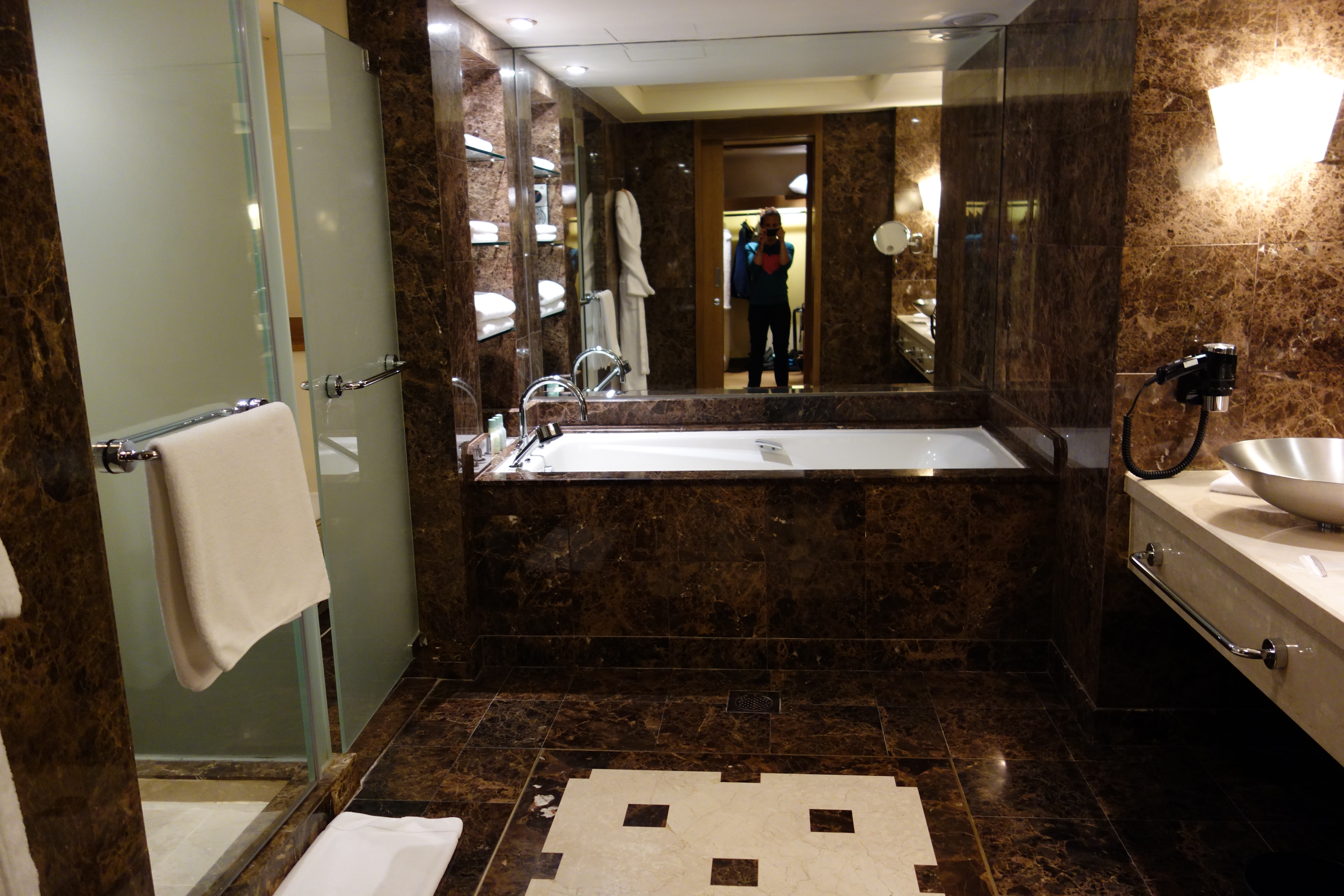 The Singapore airport was very organized and well labeled. We easily caught a cab and made it to the hotel.  We are staying at the Grand Hyatt (again), and the room is great! I enjoyed Koh Lanta, but I’m not sure how much longer I could handle that bathroom. Justin says that I’m getting too spoiled, but he only has himself to blame for that!!