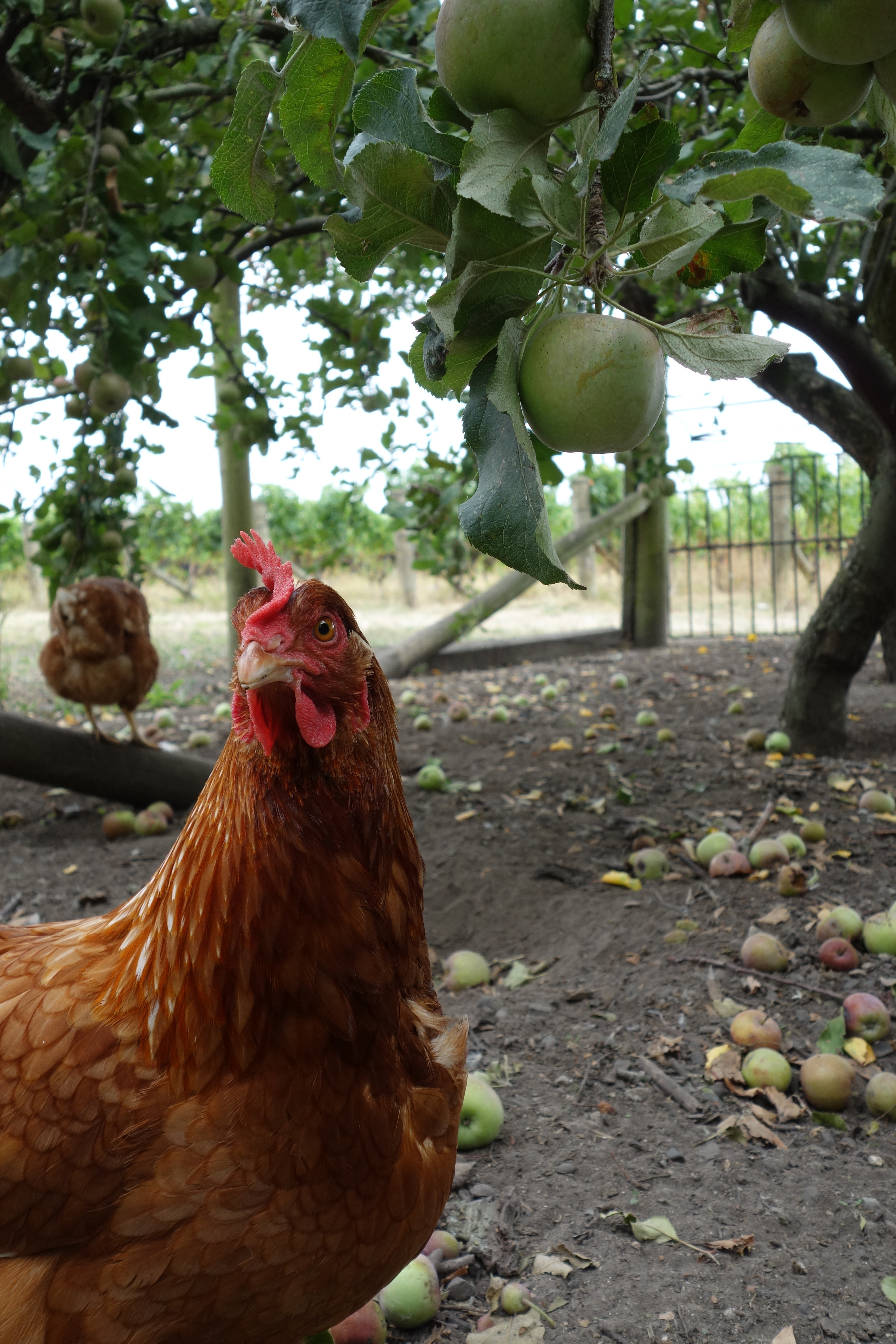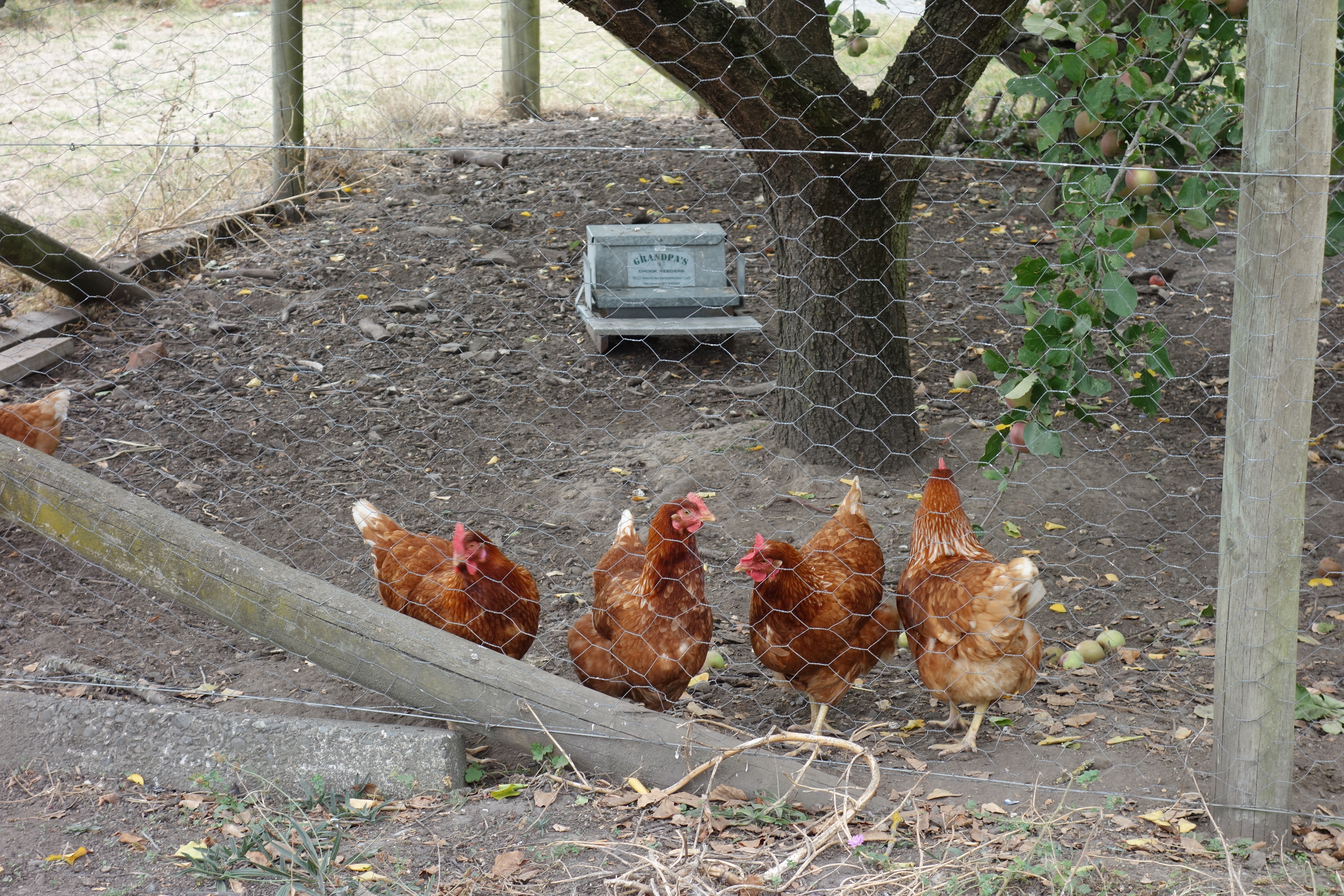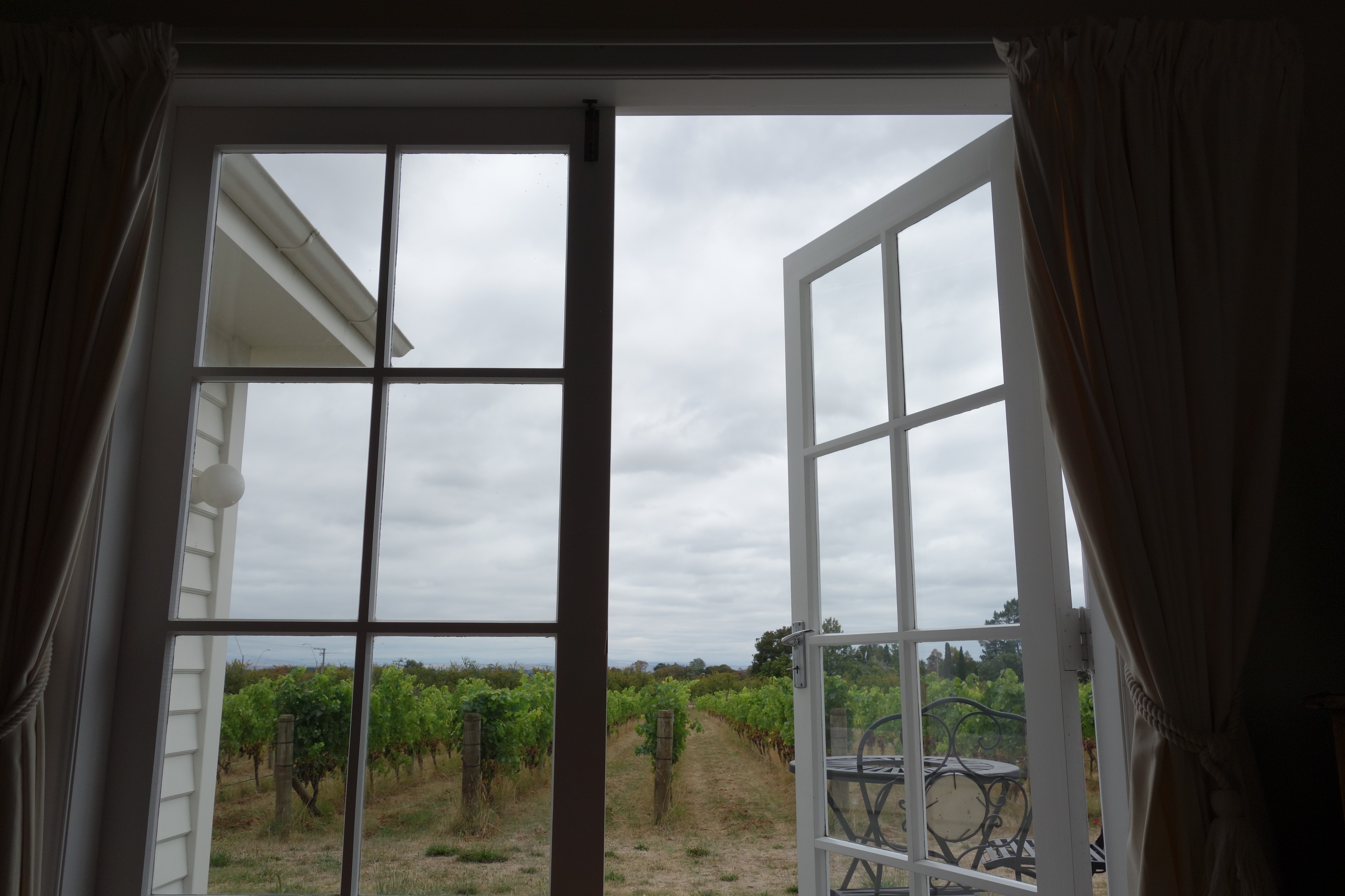 Hawke’s Bay is another wine growing region of New Zealand.  Here, we are staying in a vineyard cottage.  It is literally a little house overlooking the Tuki vineyard.  I love it here!!  We drove up a little gravel pathway flanked by lime trees on one side and grape vines on the other.  When we got to the cottage, we were greeted by the hens.  Obviously, they are very comfortable with visitors because they ran right up to us.  Actually, I think that they just wanted to be fed!