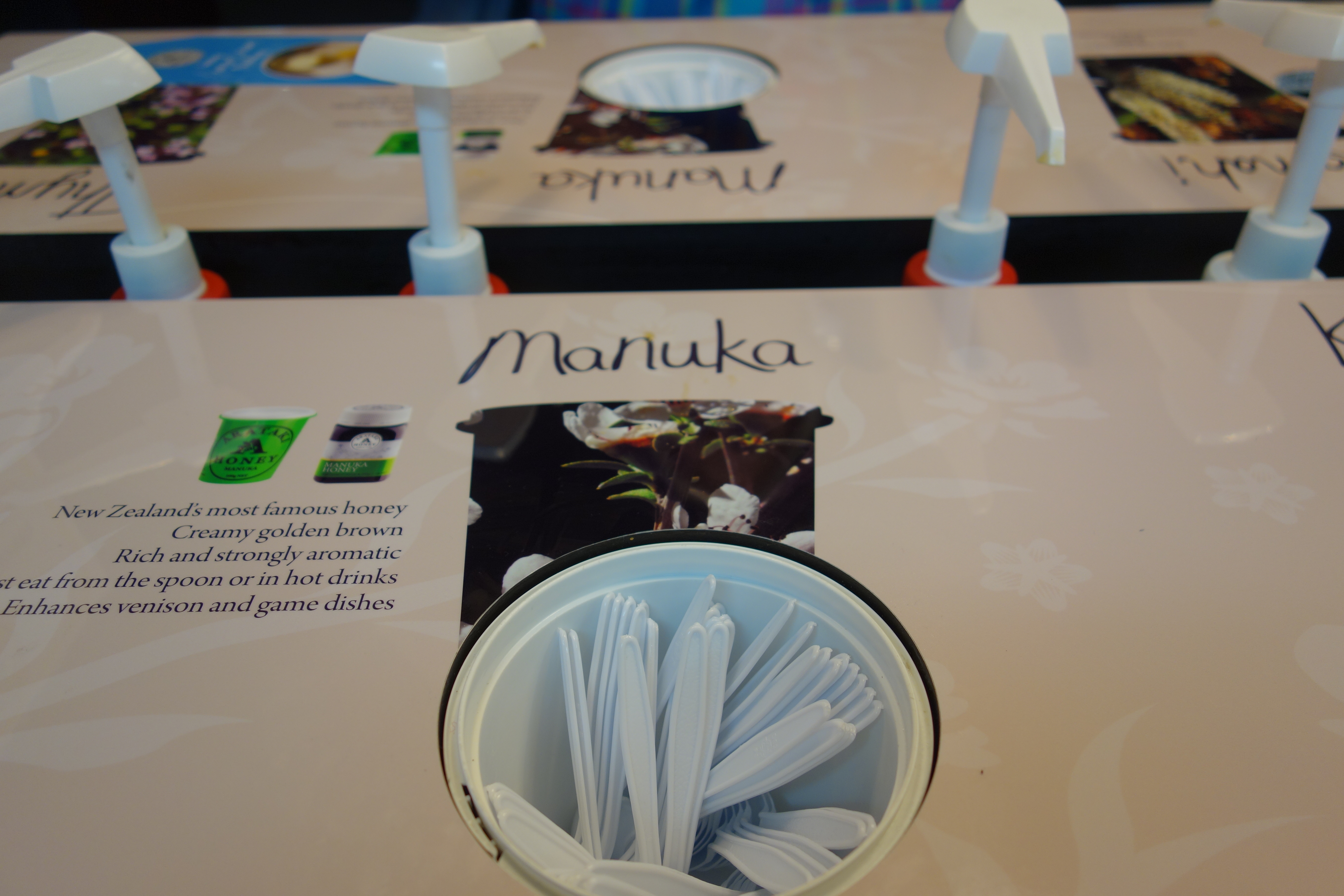We had some time to kill between the second and third tasting so we went to the Arataki Honey Visitor’s Centre.  Apparently, they make alot of honey in New Zealand, including Manuka honey.  Manuka honey is made from the flowers of two New Zealand plants.  It is said to have alot of medicinal purposes.  We also got to sample several different varieties of honey.  They were all really good.  Neither of us were huge fans of honey, but it seems like we are developing an appreciation for it.